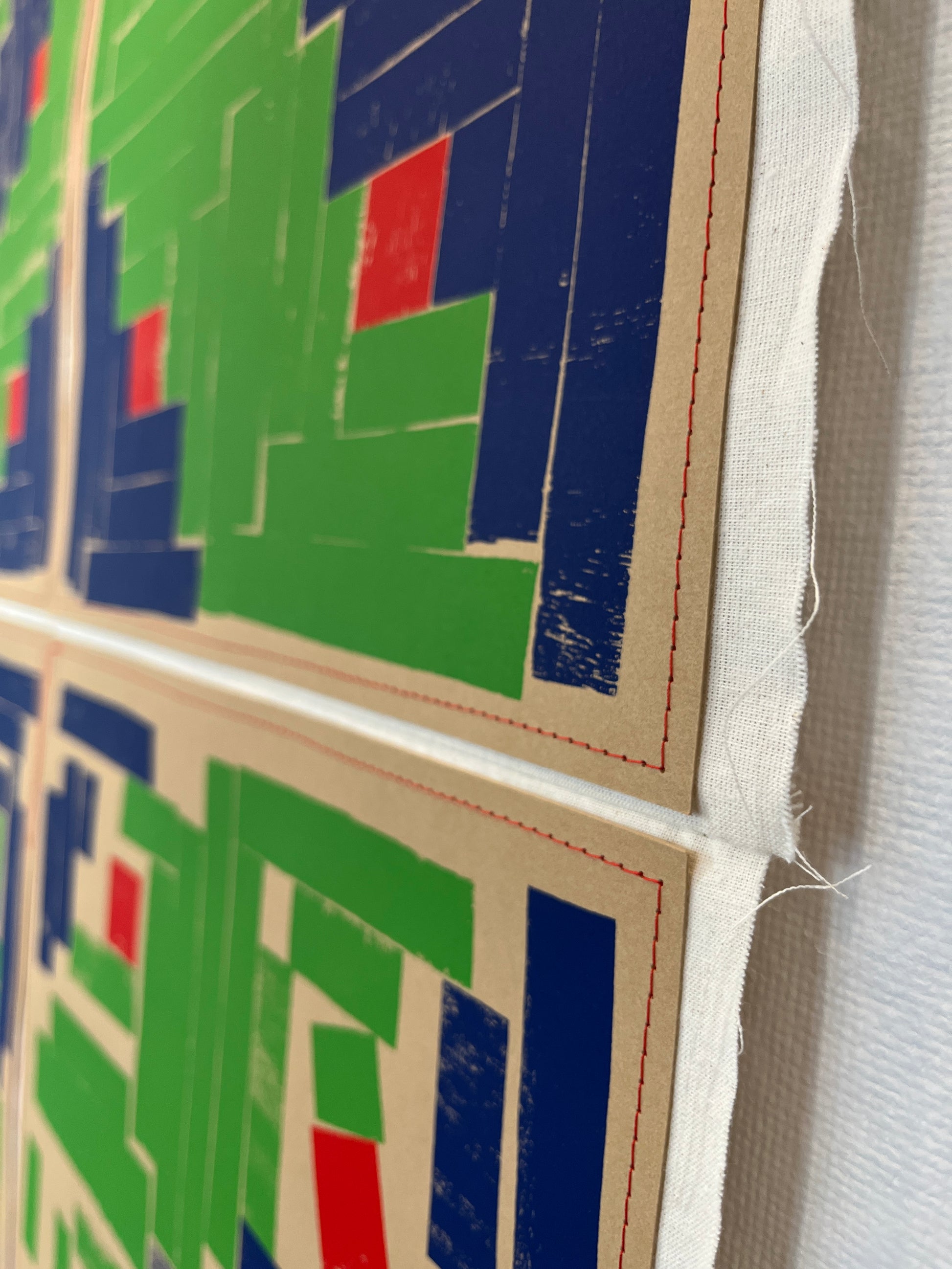 Silkscreen on Rives BFK sewn onto muslin