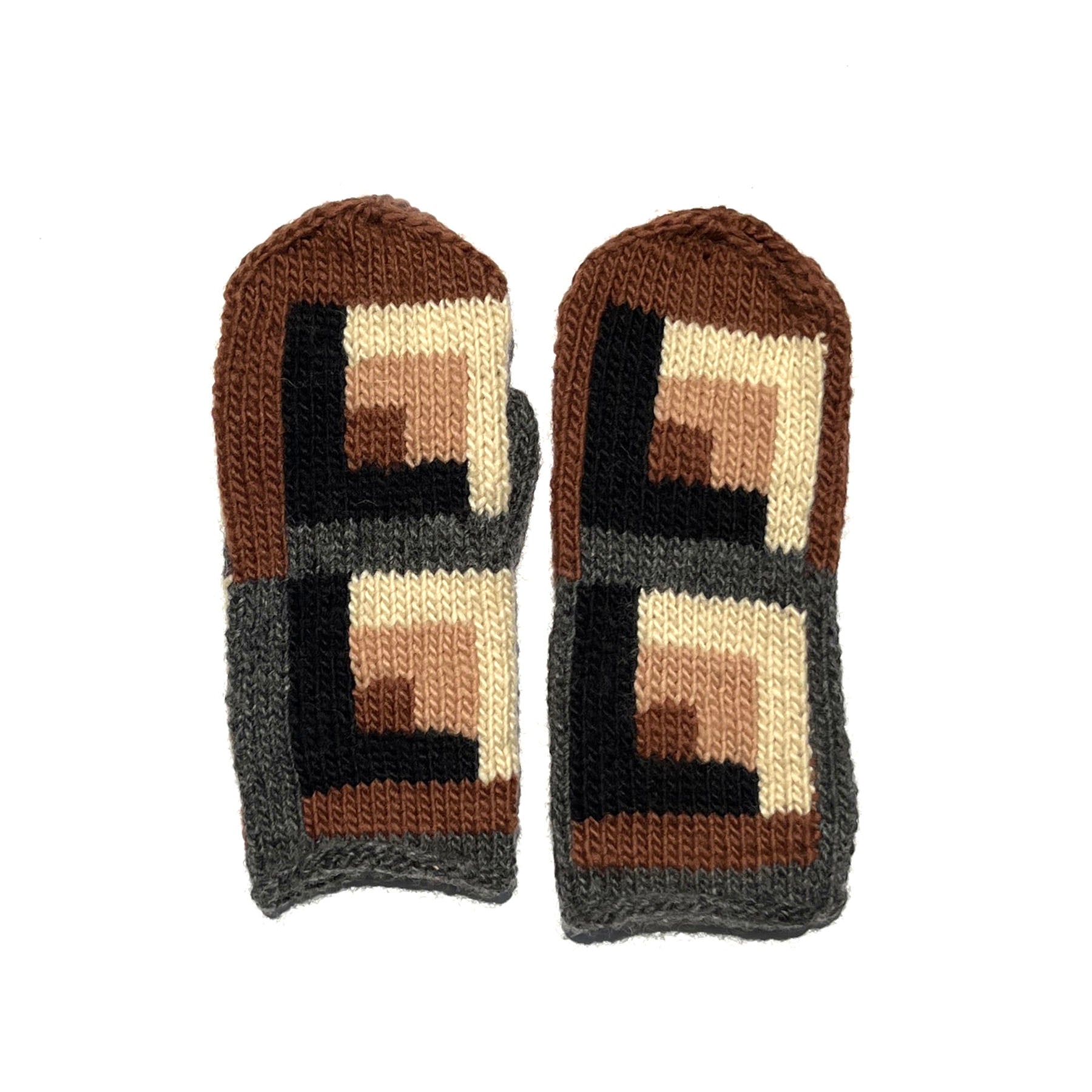 Log Cabin Pattern mittens made to keep you warm. Limited edition, 100% lambswool, imported.